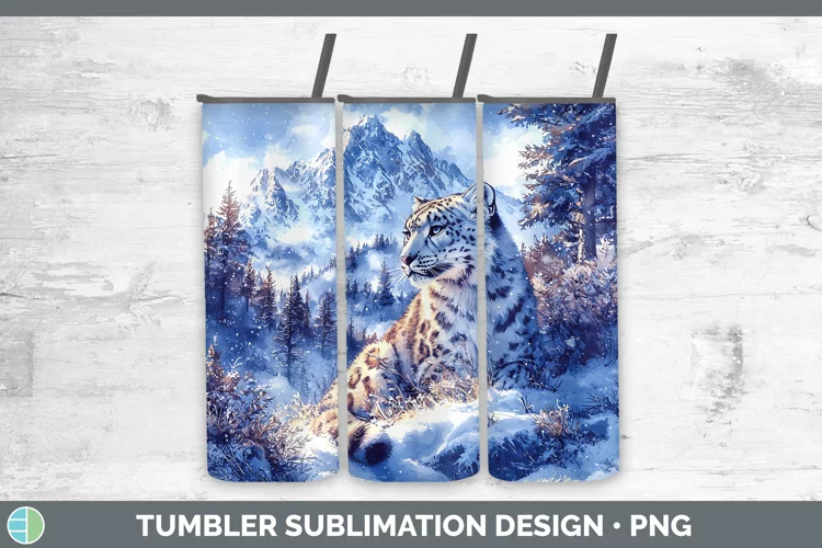 Winter Wild Cats Leopard Snow Tumbler Sublimation 20 oz Skin