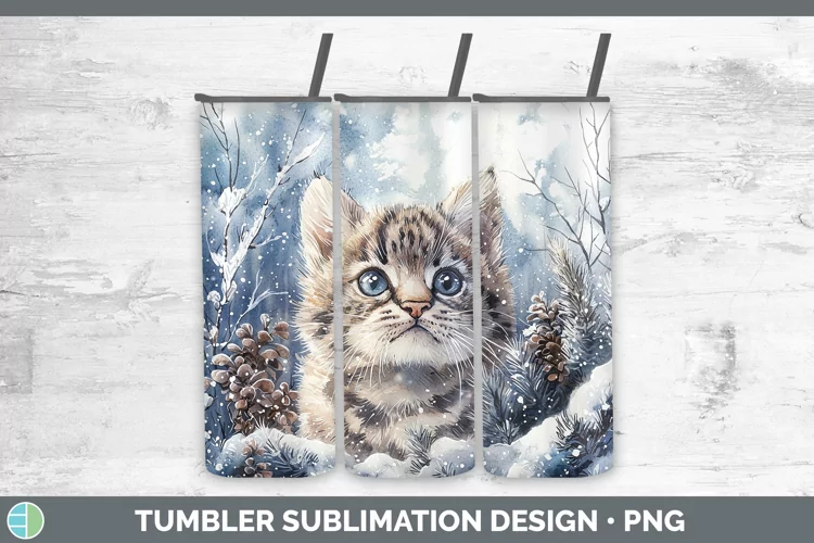 Winter Wild Cats Pampas Cat Tumbler Sublimation 20 oz Skinny
