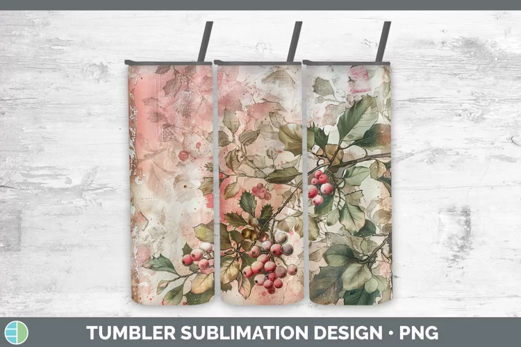 Vintage Pink Christmas Mistletoe Tumbler Sublimation 20 oz S