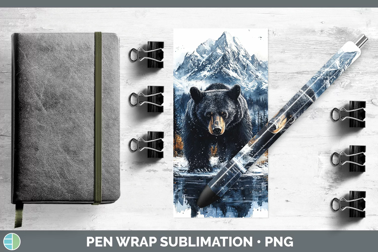 Winter Woodland Animals Black Bear Pen Wrap Sublimation Pen