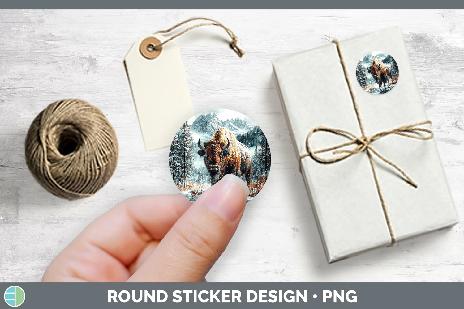 Winter Woodland Animals Bison Stickers | Round Labels Design