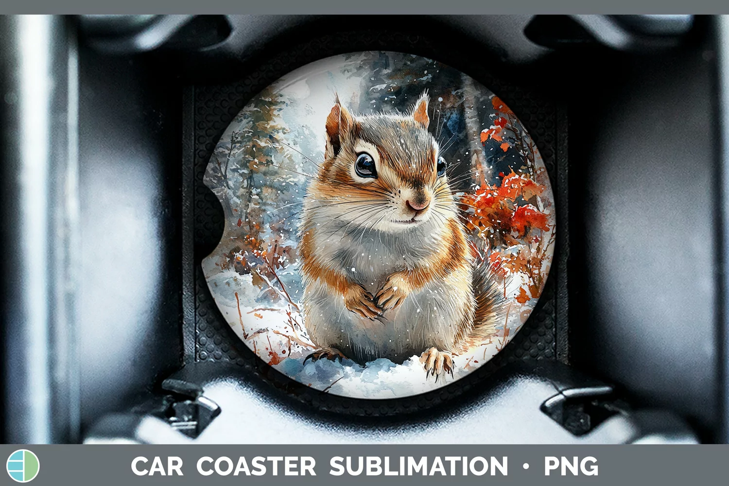 Winter Woodland Animals Chipmunk Car Coaster Sublimation De