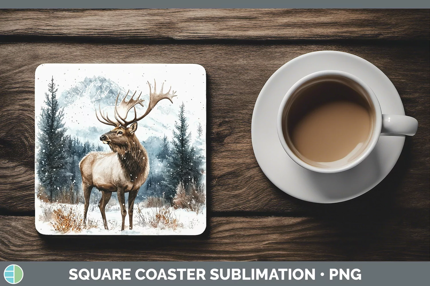 Winter Woodland Animals Elk Square Coaster Sublimation Coast