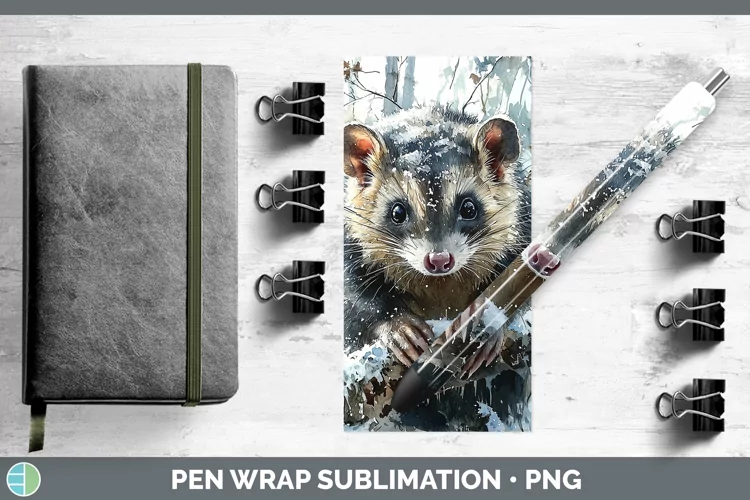 Winter Woodland Animals Opossum Pen Wrap Sublimation Pen Des