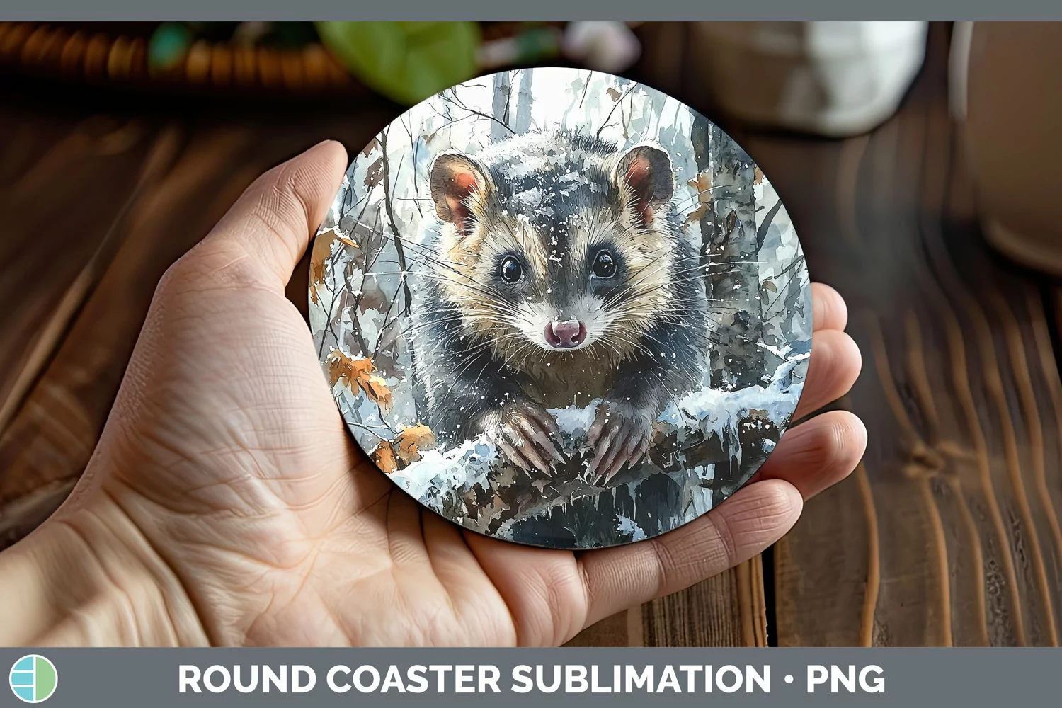 Winter Woodland Animals Opossum Round Coaster Sublimation Co