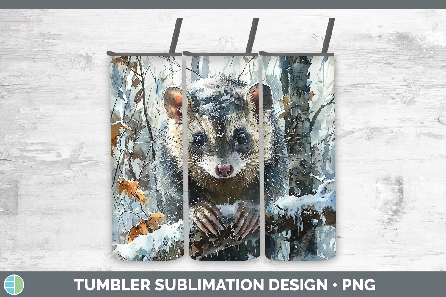 Winter Woodland Animals Opossum Tumbler Sublimation 20 oz Sk