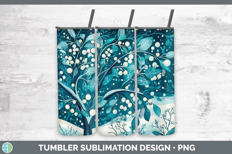 Teal Christmas Mistletoe Tumbler Sublimation 20 oz Skinny Tu