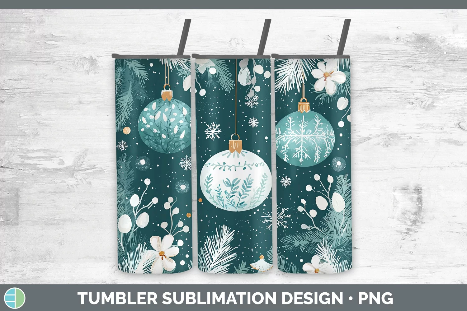 Teal Christmas Ornaments Tumbler Sublimation 20 oz Skinny Tu