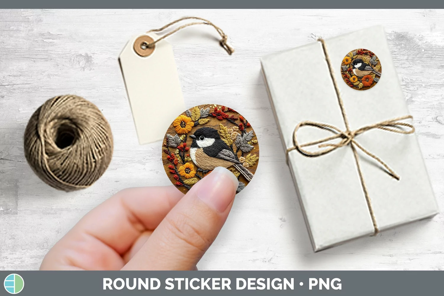 Similar Design Products to Embroidered Chickadee Stickers | Round Labels Designs