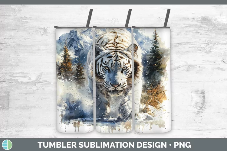 Winter Wild Cats White Tiger Tumbler Sublimation 20 oz Skinn
