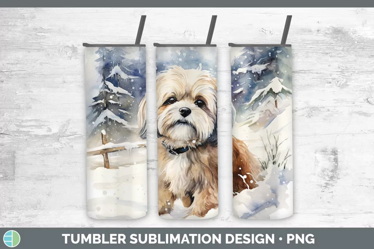 Winter Dogs Lhasa Apso Tumbler Sublimation 20 oz Skinny Tumb