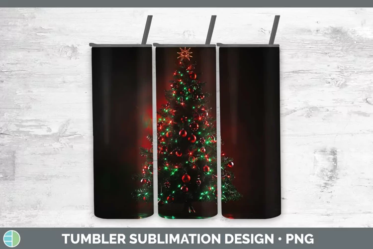 Neon Christmas Tree Tumbler Sublimation 20 oz Skinny Tu