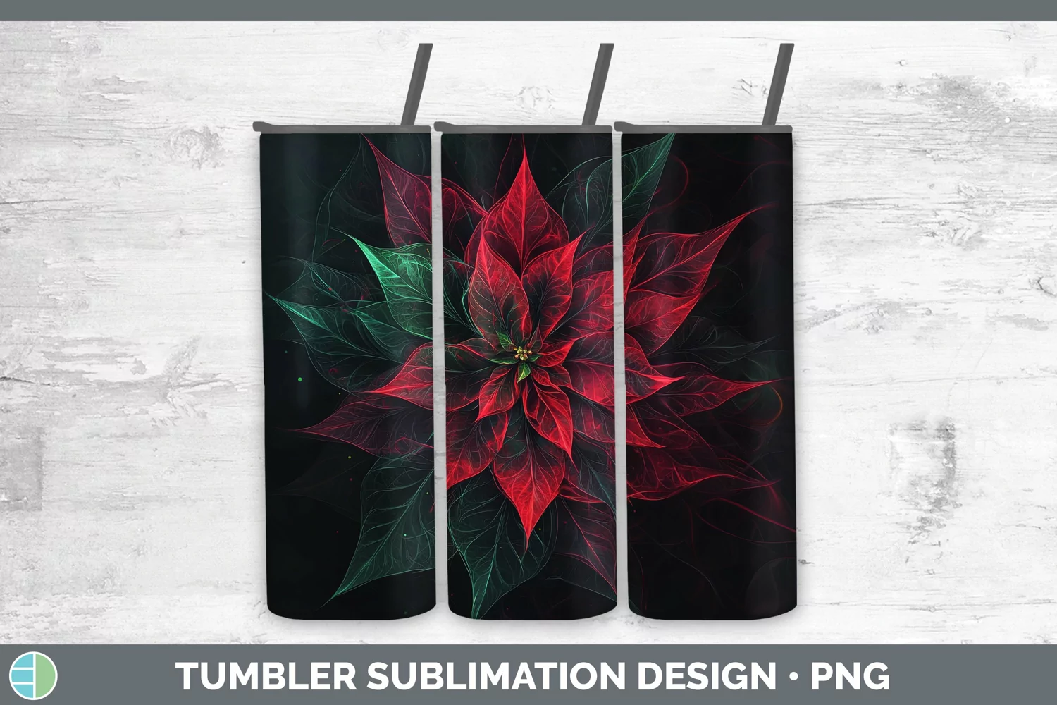 Neon Christmas Poinsettia Tumbler Sublimation 20 oz Skinny T
