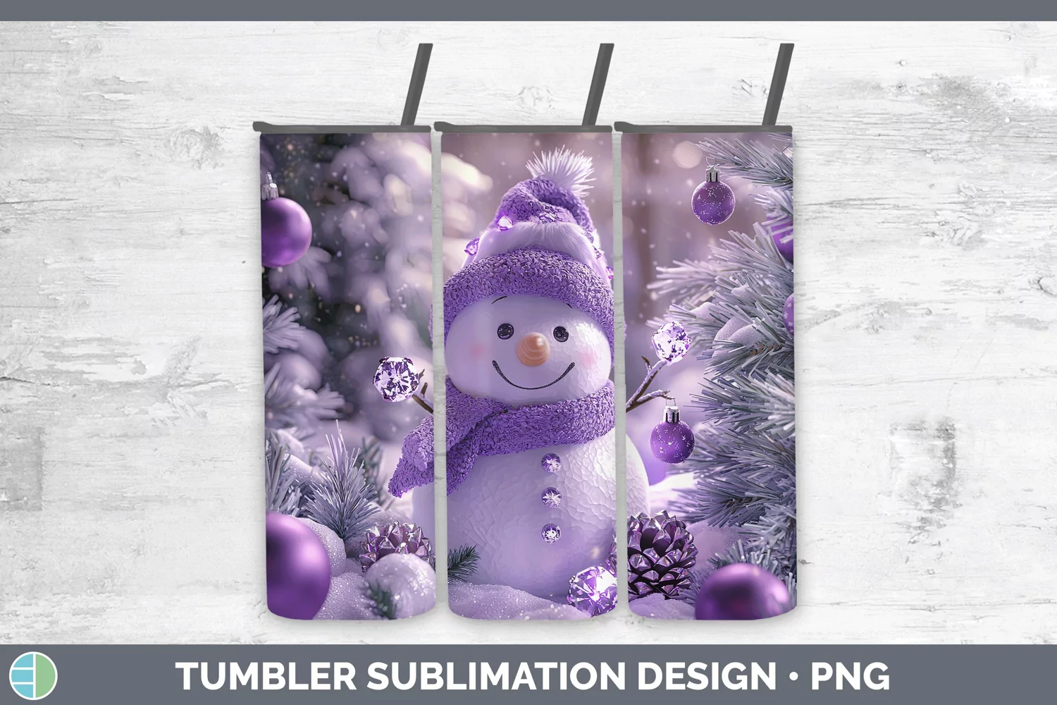 Purple 3D Christmas Snowman Tumbler Sublimation 20 oz Skinny