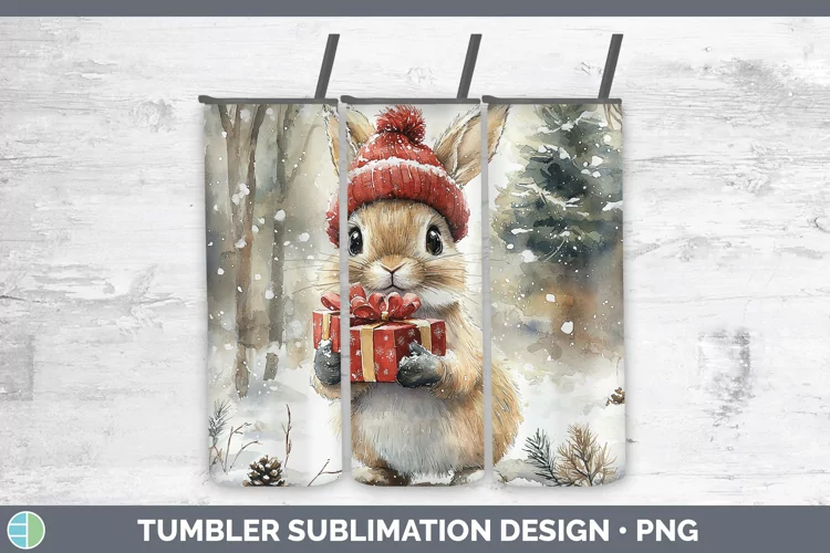 Christmas Woodland Snowshoe Hare Tumbler Sublimation 20 oz S