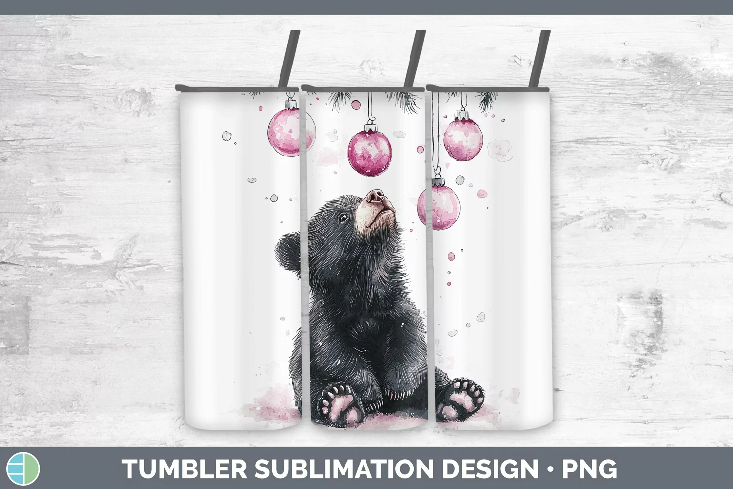 Similar Design Products to Pink Christmas Black Bear Tumbler Sublimation 20 oz Skinny T