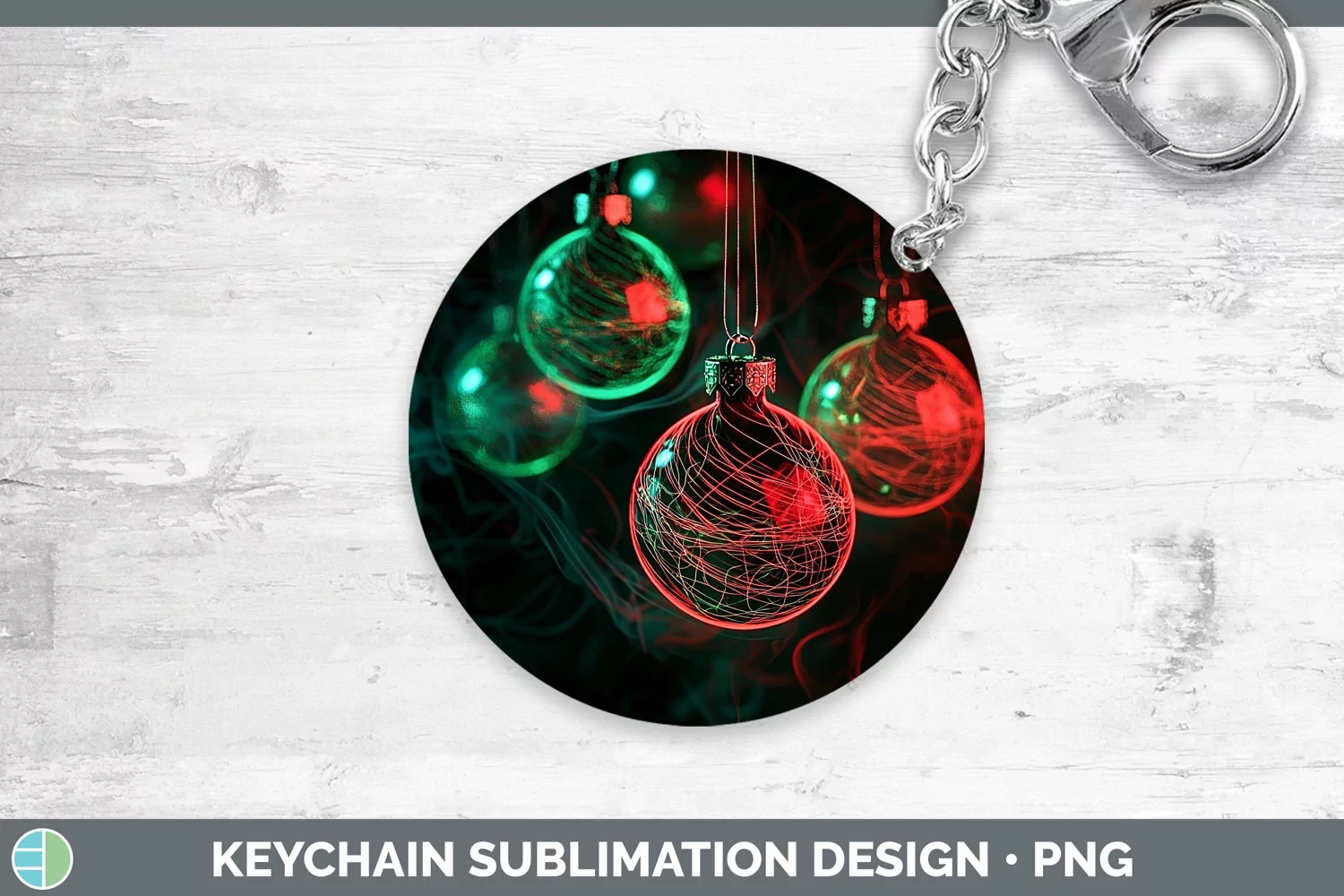 Neon Christmas Ornaments Keychain Sublimation Keyring Design