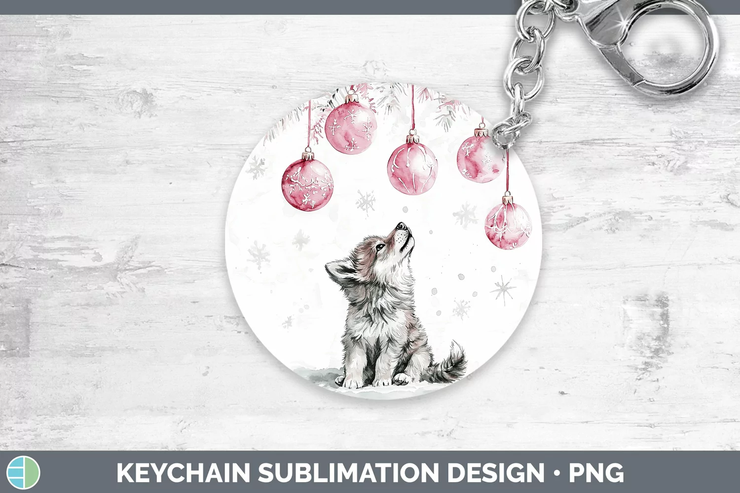 Pink Christmas Wolf Keychain Sublimation Keyring Designs