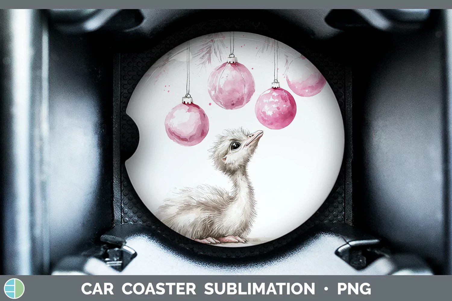 Pink Christmas Farm Ostrich Car Coaster Sublimation Designs