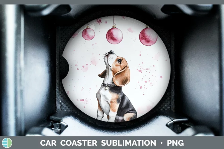 Pink Christmas Beagle Car Coaster Sublimation Designs