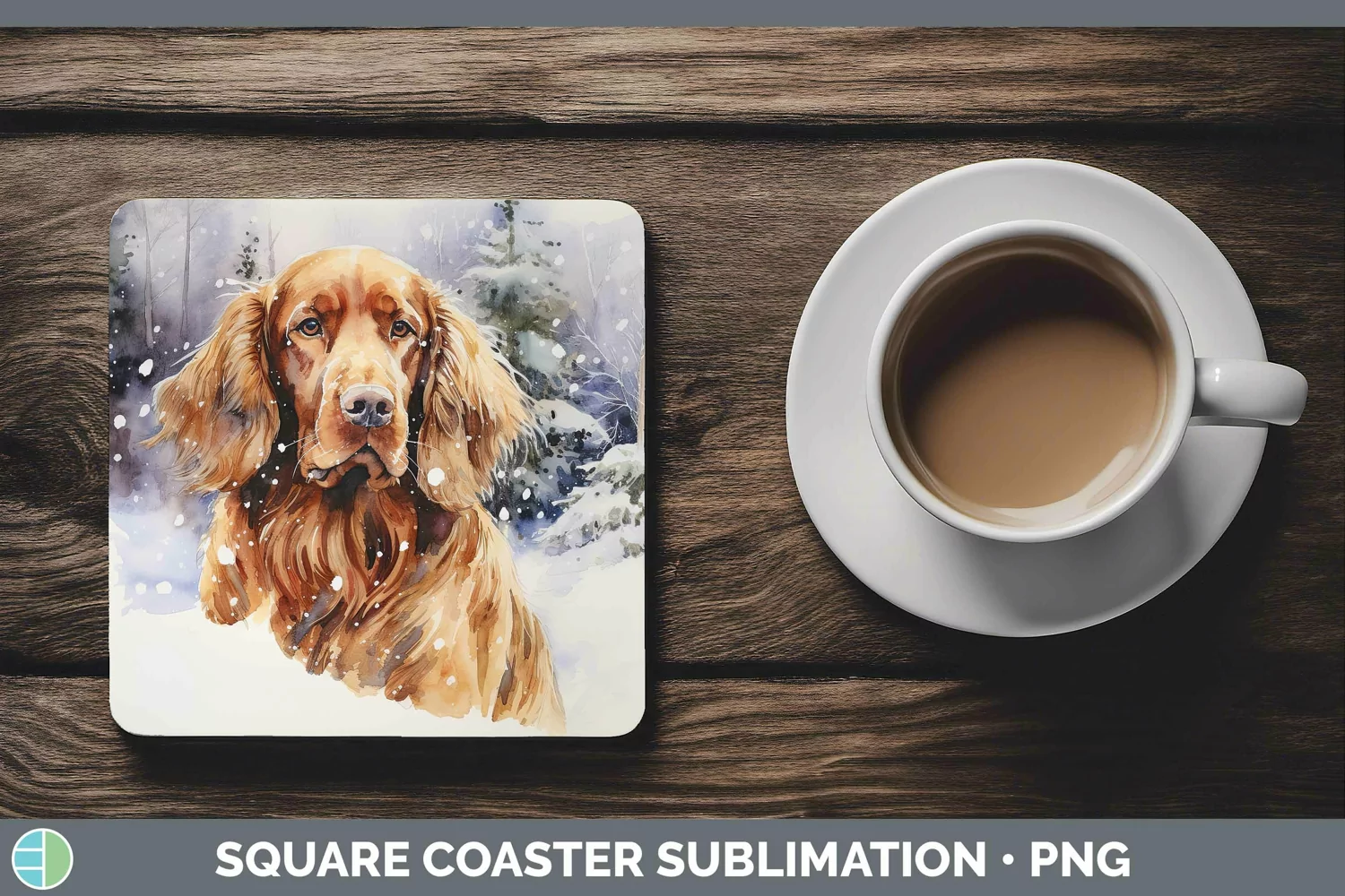 Winter Dogs Irish Setter Square Coaster Sublimation Coaster