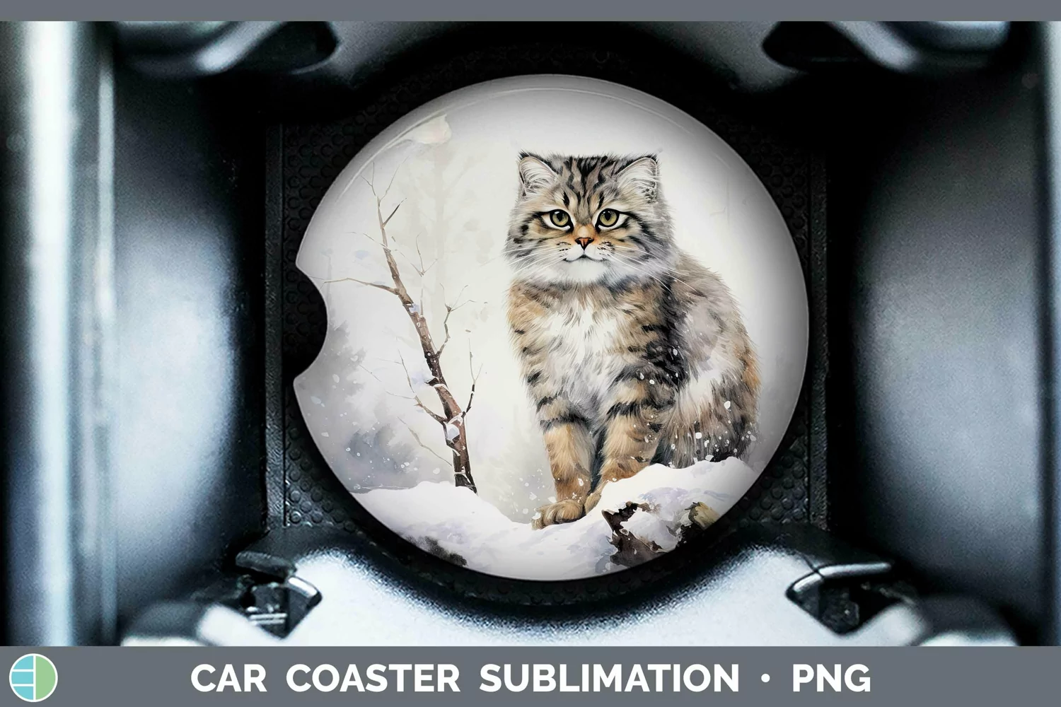 Winter Wild Cats Pallas Cat Car Coaster Sublimation Designs