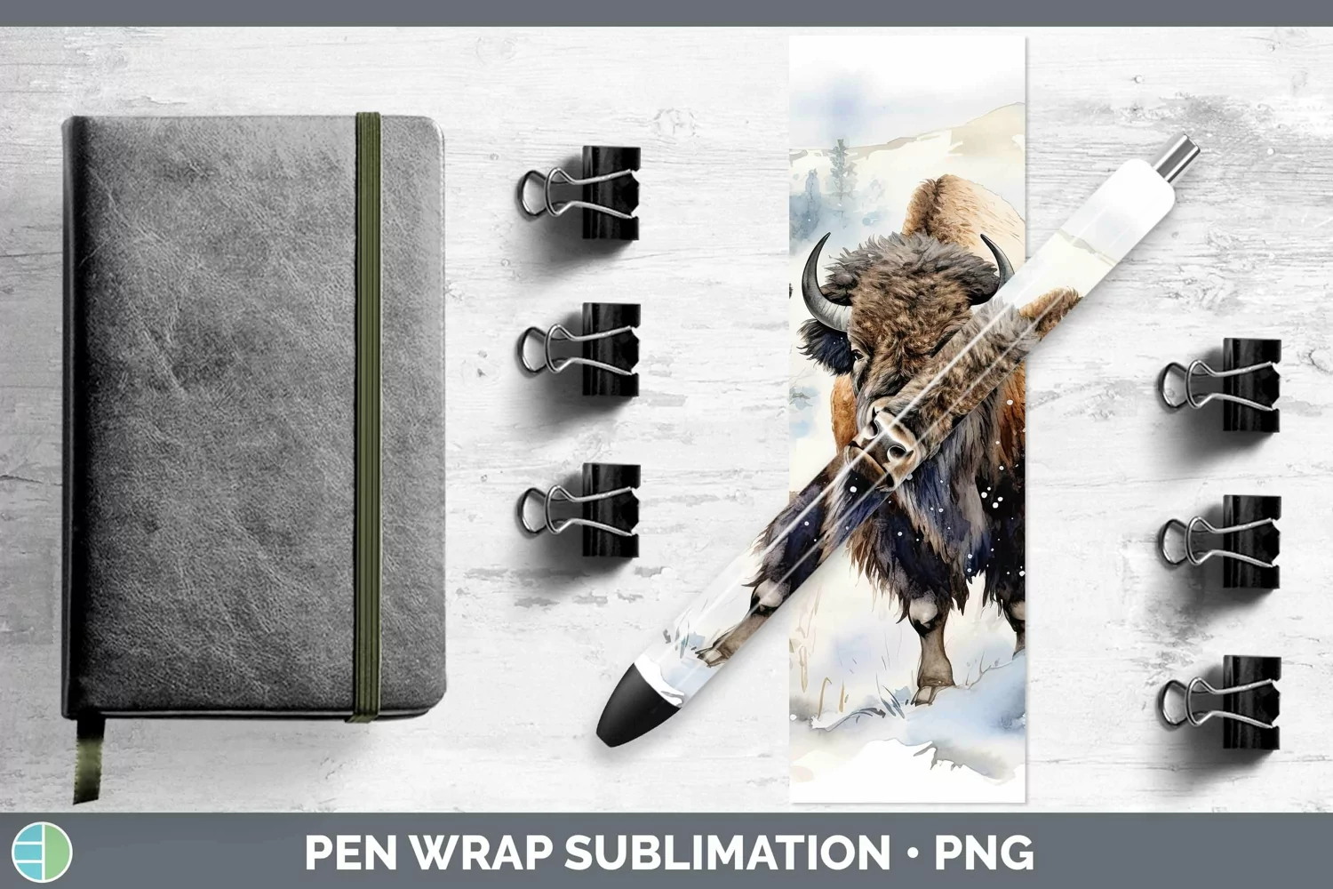 Winter Woodland Animals Bison Pen Wrap Sublimation Pen Desig
