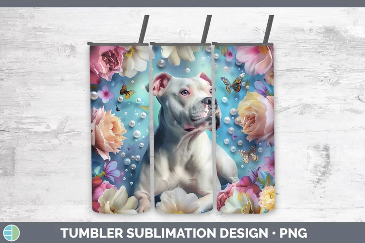 Floral Pearl Dog Pit Bull Tumbler Sublimation 20 oz Skinny T