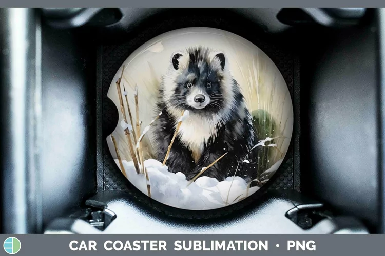 Winter Woodland Animals Skunk Car Coaster Sublimation Desig