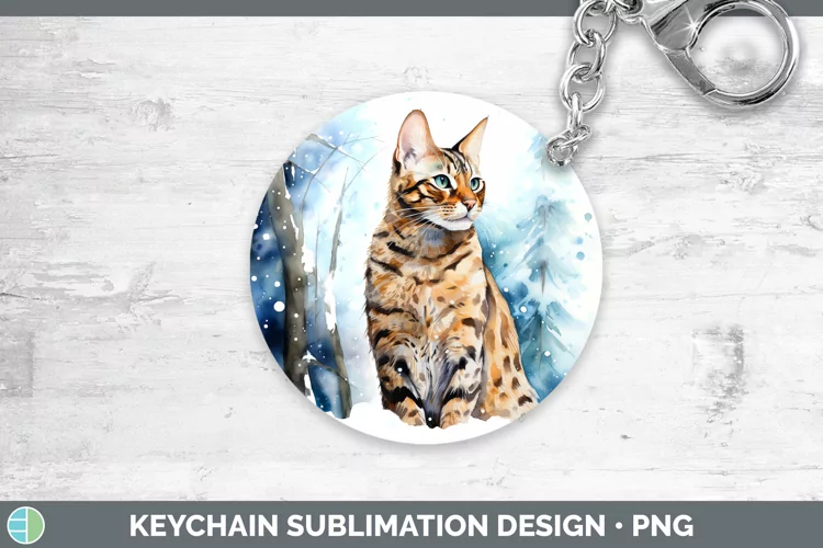 Winter Snow Bengal Cat Keychain Sublimation Keyring Designs