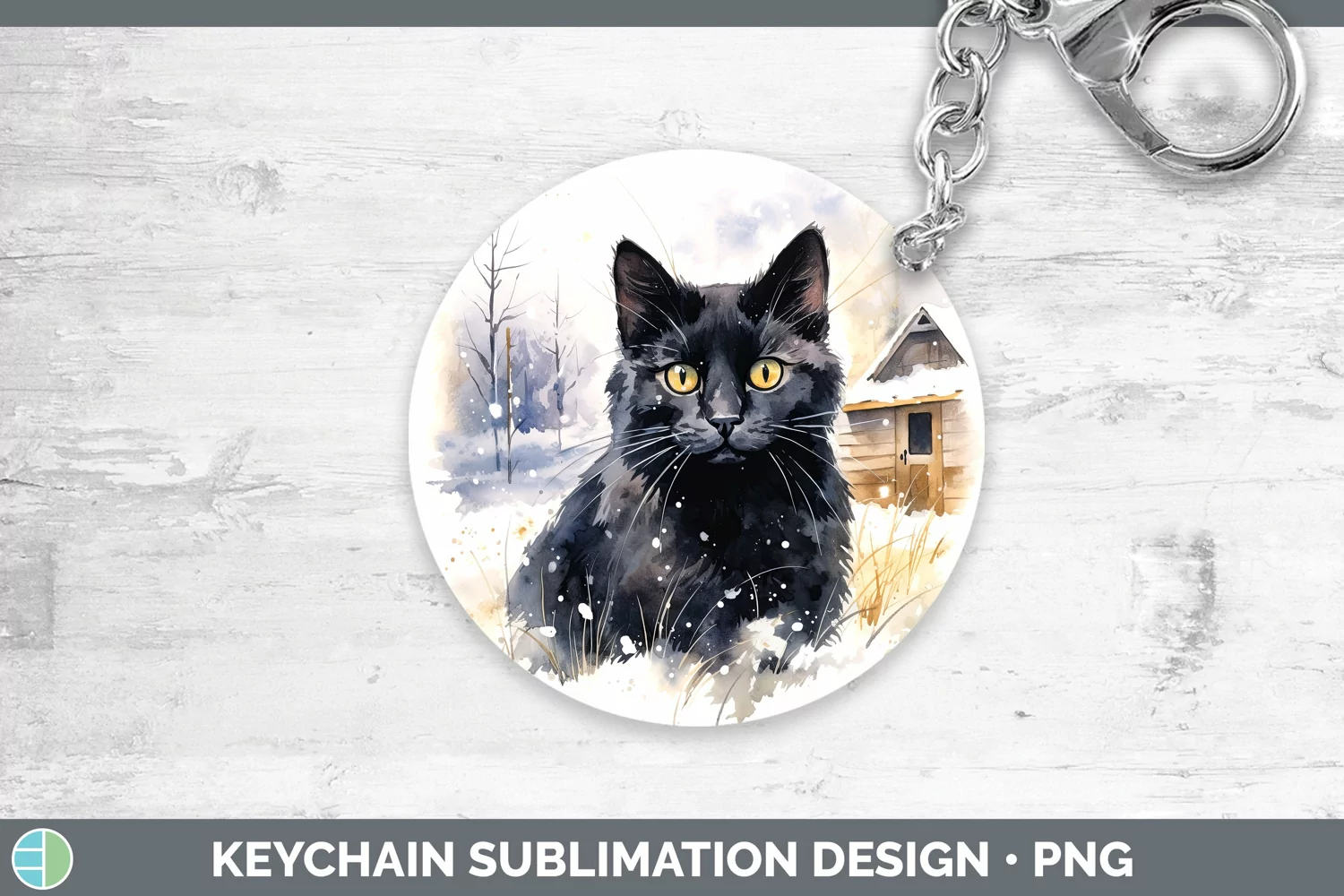 Winter Snow Black Cat Keychain Sublimation Keyring Designs