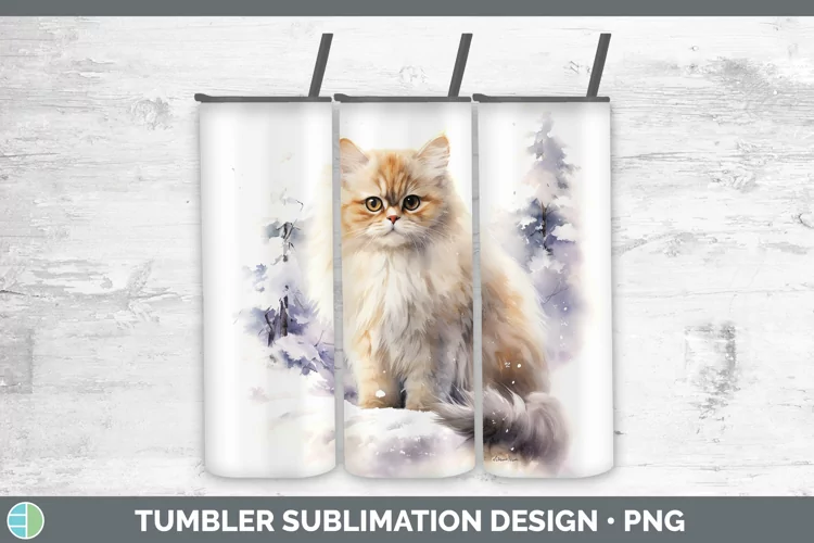 Winter Snow Persian Cat Tumbler Sublimation 20 oz Skinny Tum