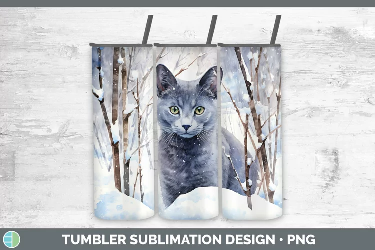 Similar Design Products to Winter Snow Russian Blue Cat Tumbler Sublimation 20 oz Skinn