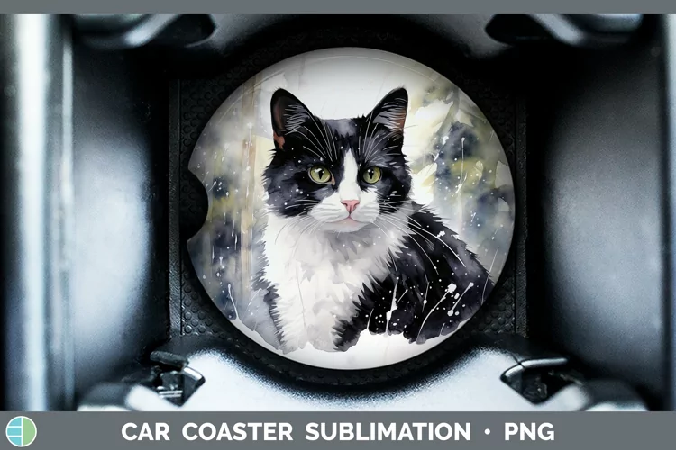 Winter Snow Tuxedo Cat Car Coaster Sublimation Designs