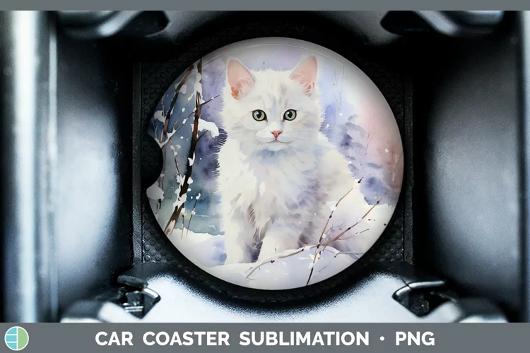 Winter Snow White Cat Car Coaster Sublimation Designs