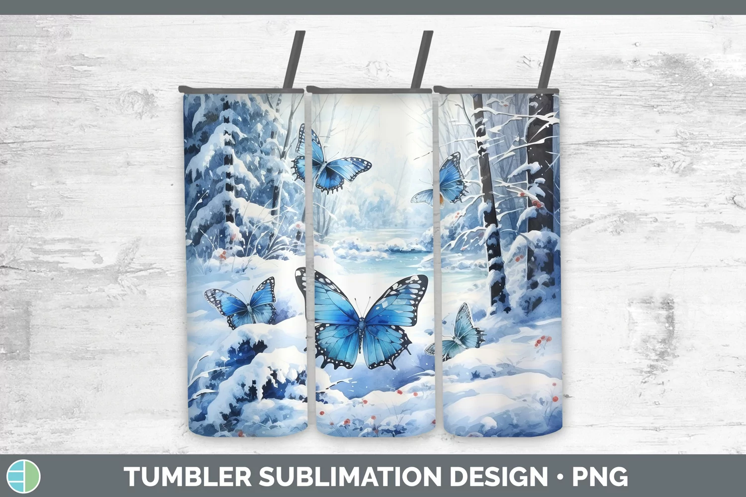 Winter Snow Butterfly Tumbler Sublimation 20 oz Skinny Tumbl