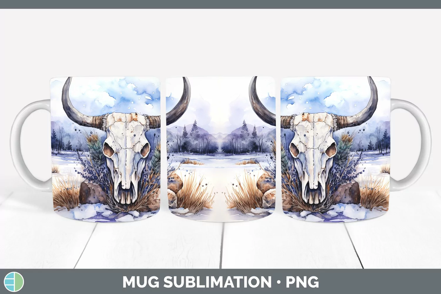 Winter Snow Cow Skull Mug Wrap Sublimation Coffee Cup Design