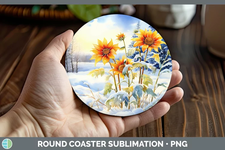 Similar Design Products to Winter Snow Sunflower Round Coaster Sublimation Coaster Desi