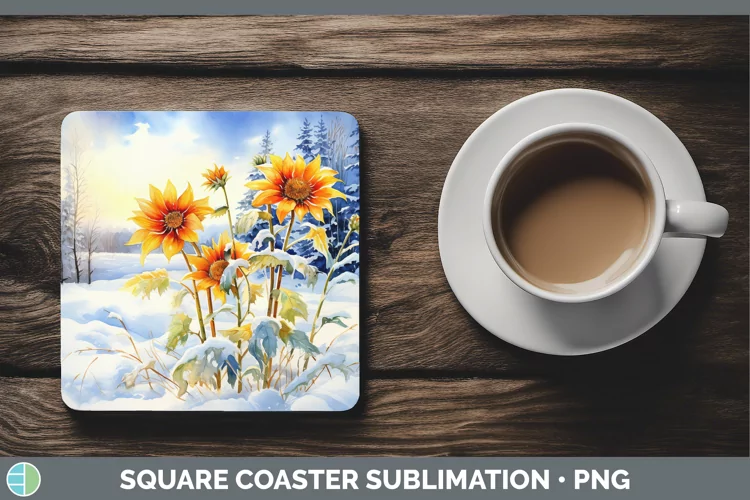 Winter Snow Sunflower Square Coaster Sublimation Coaster Des