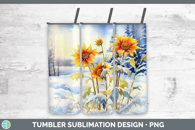 Winter Snow Sunflower Tumbler Sublimation 20 oz Skinny Tumbl