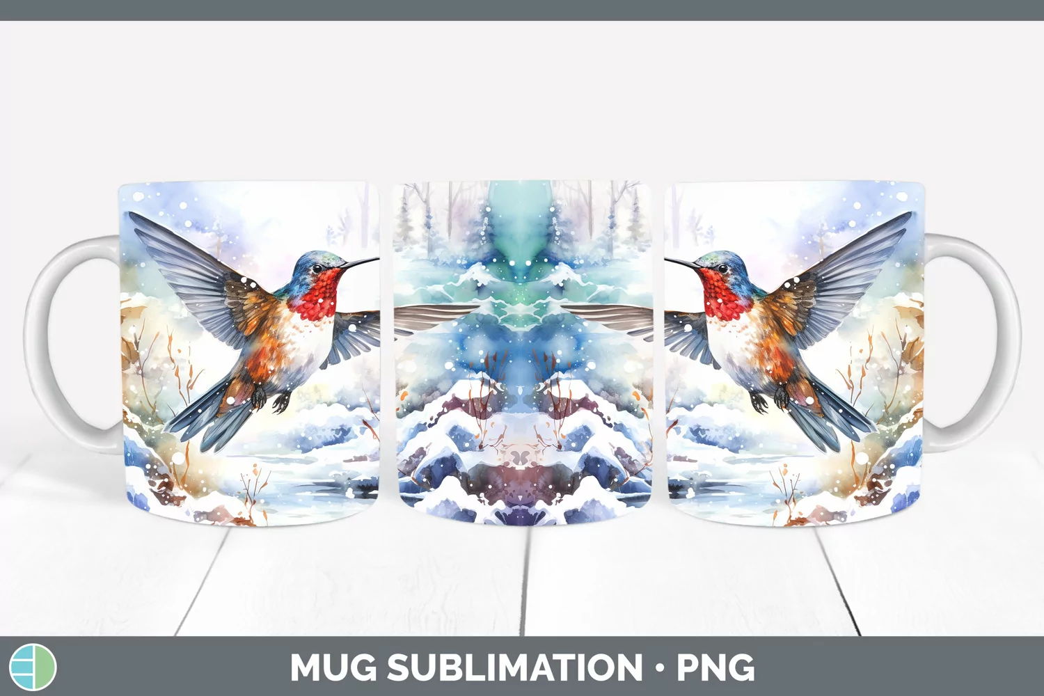 Winter Snow Hummingbird Mug Wrap Sublimation Coffee Cup Desi