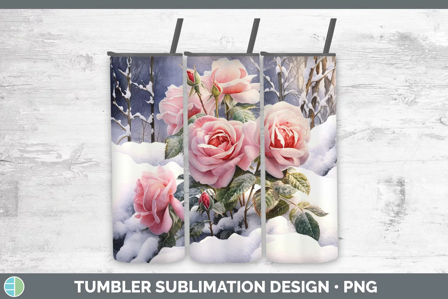 Winter Snow Rose Tumbler Sublimation 20 oz Skinny Tumbler De