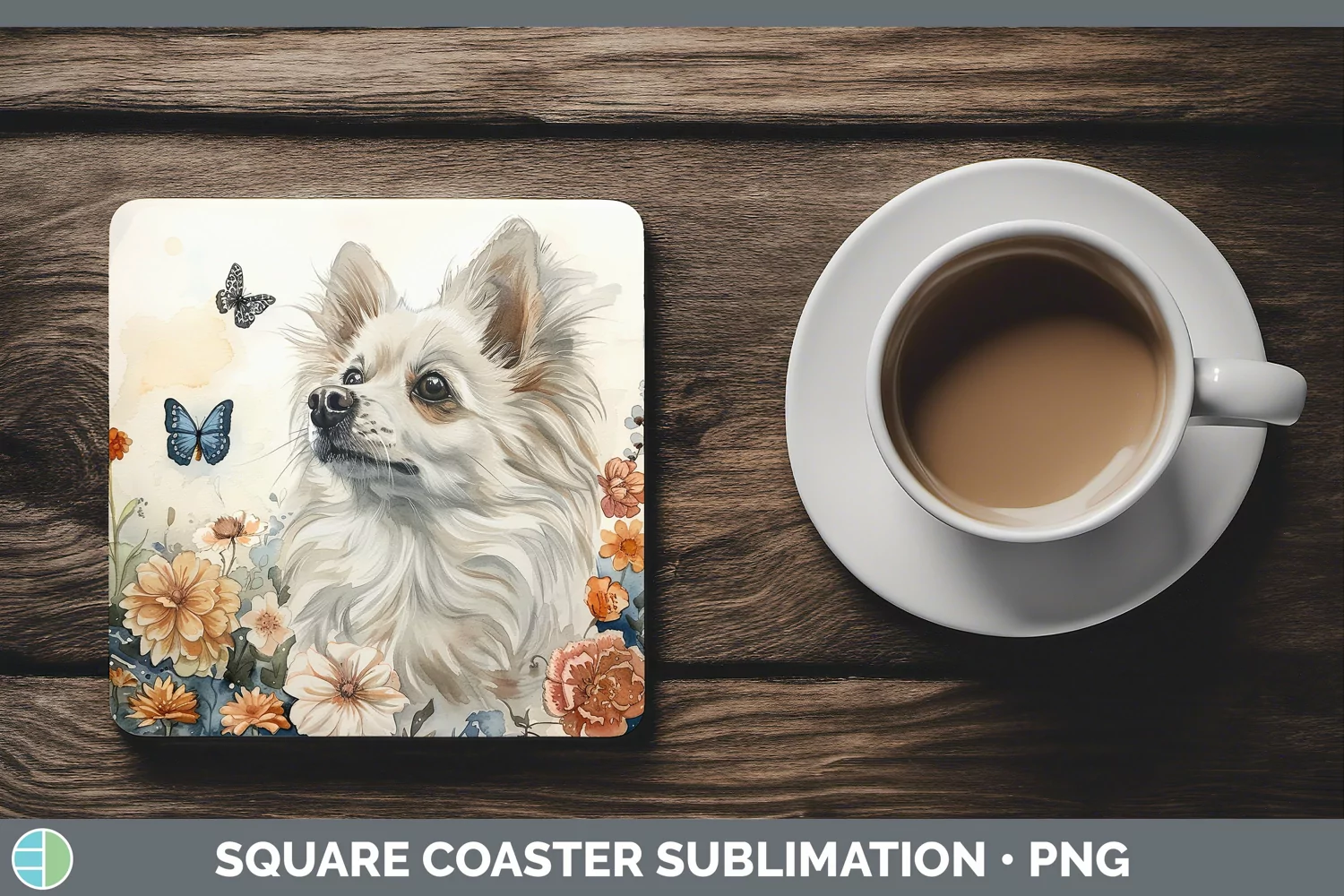 Butterfly Dog American Eskie Dog Square Coaster Sublimation