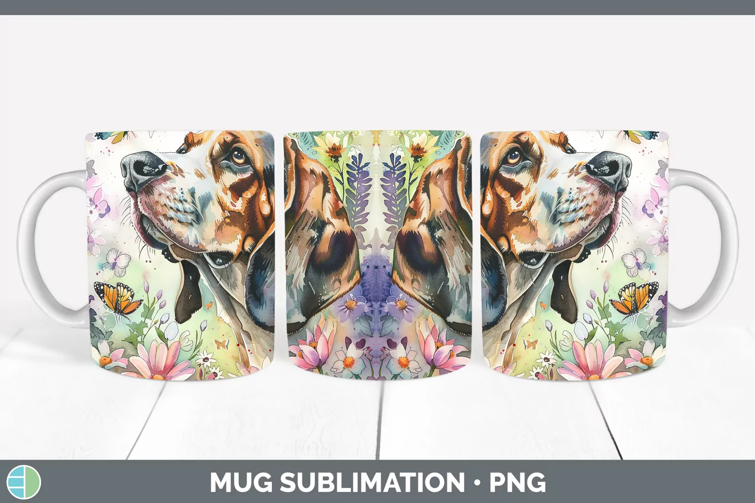 Butterfly Dog English Coonhound Dog Mug Wrap Sublimation Cof