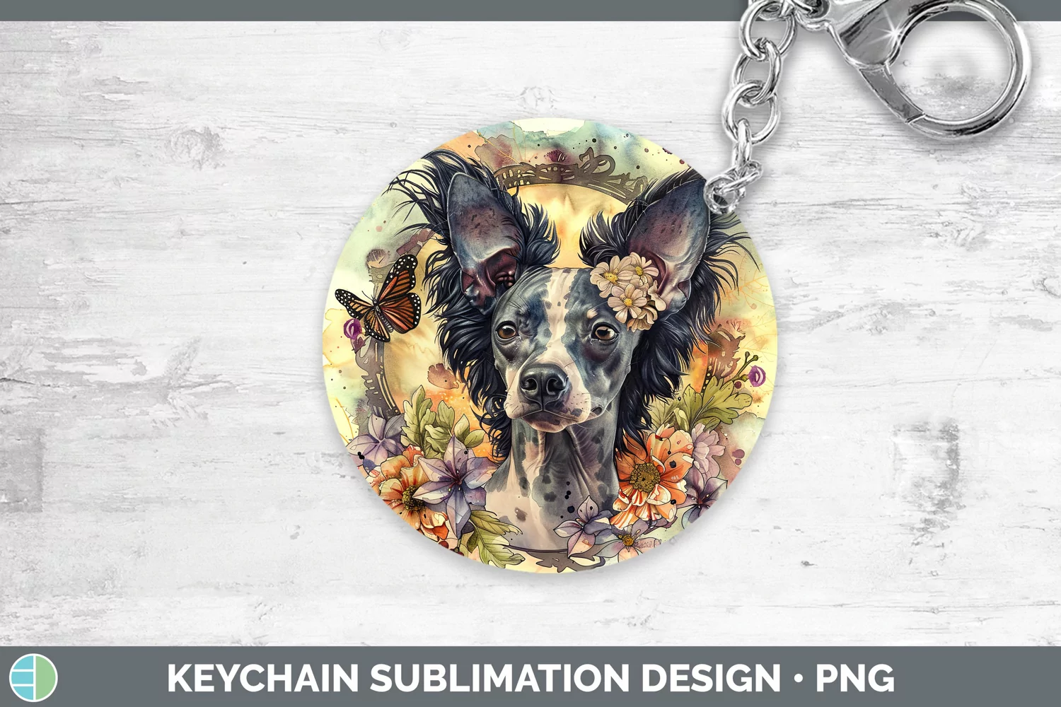 Similar Design Products to Butterfly Dog Hairless Chinese Crested Dog Keychain Sublimat