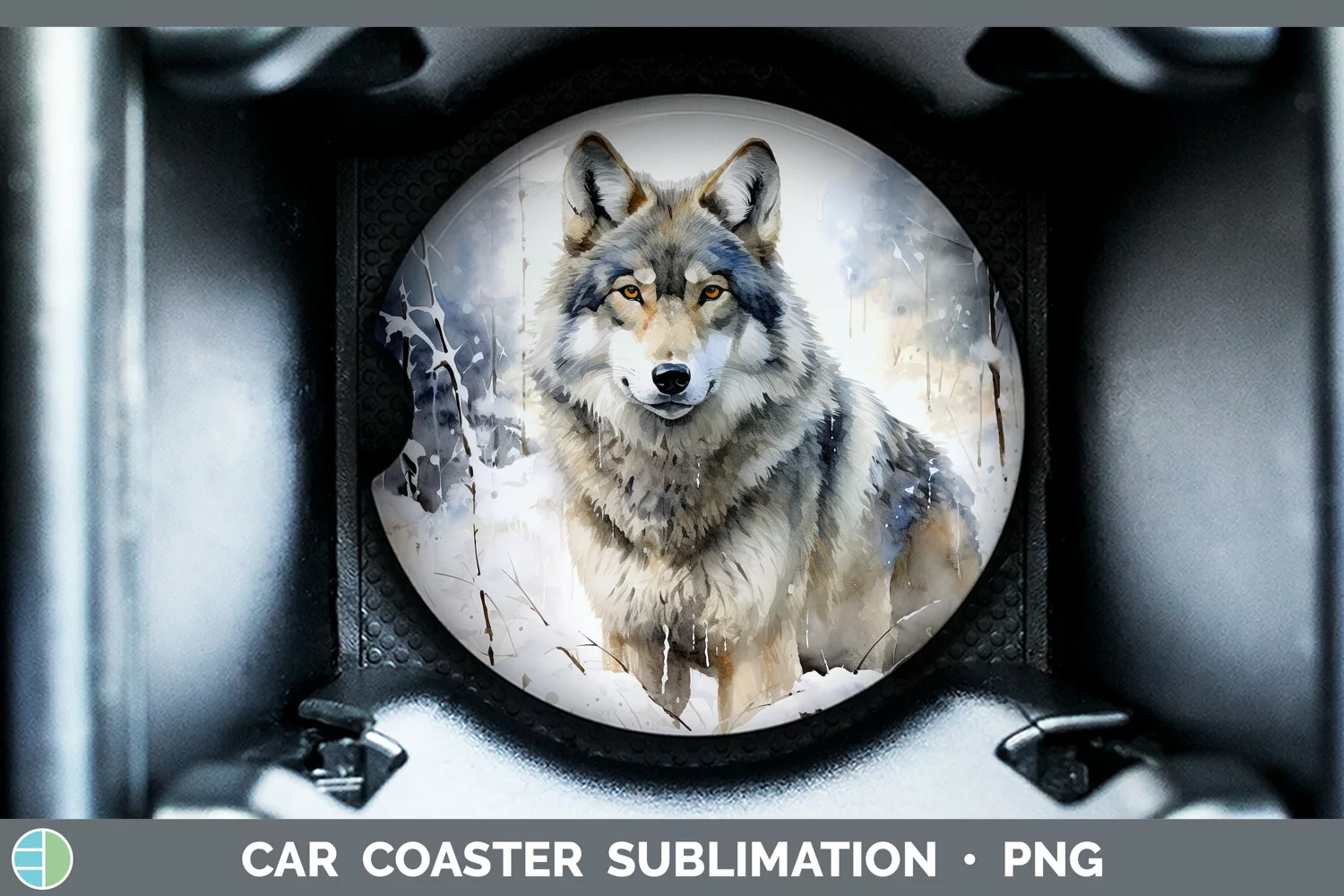 Winter Snow Wolf Car Coaster Sublimation Designs