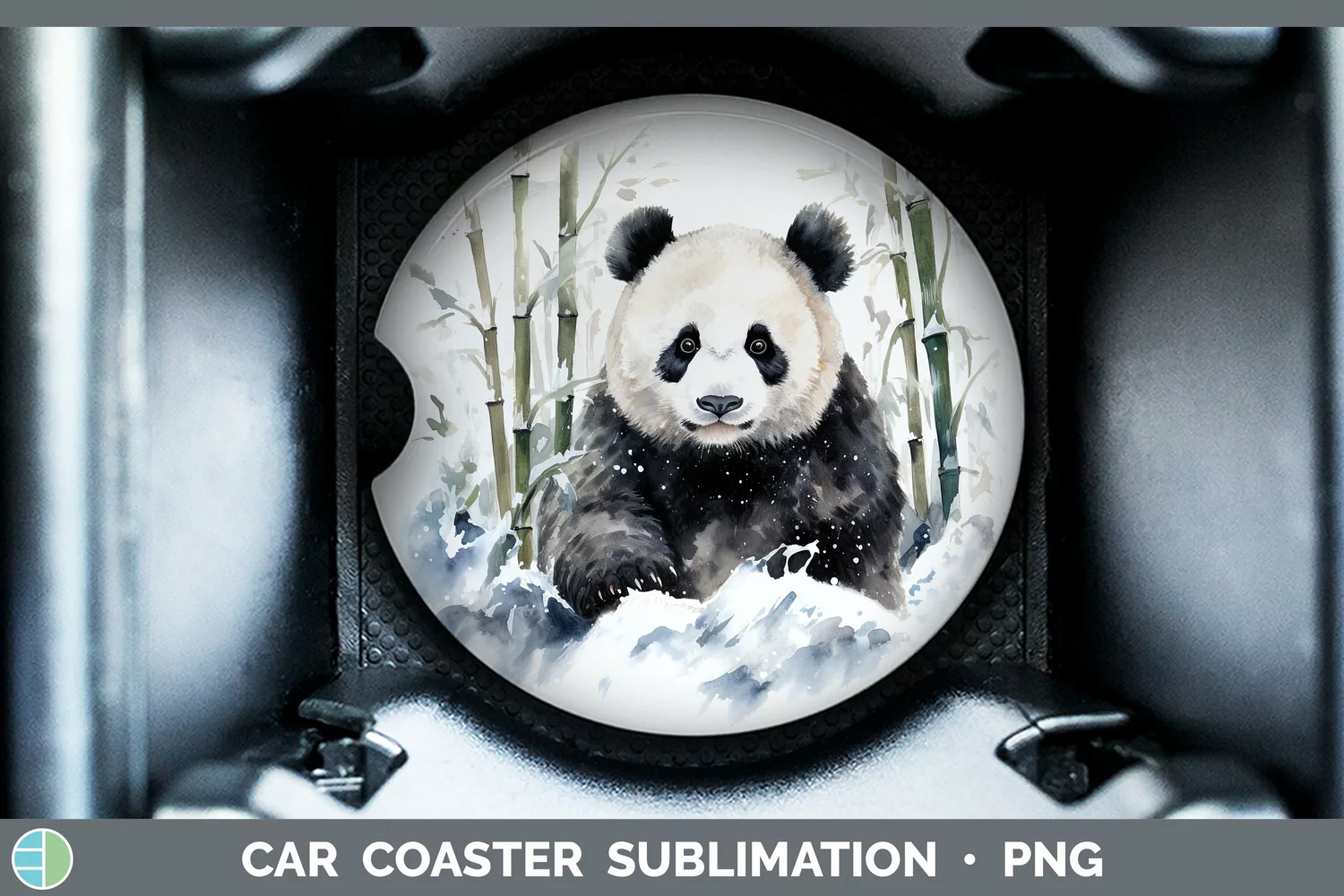 Winter Snow Panda Car Coaster Sublimation Designs