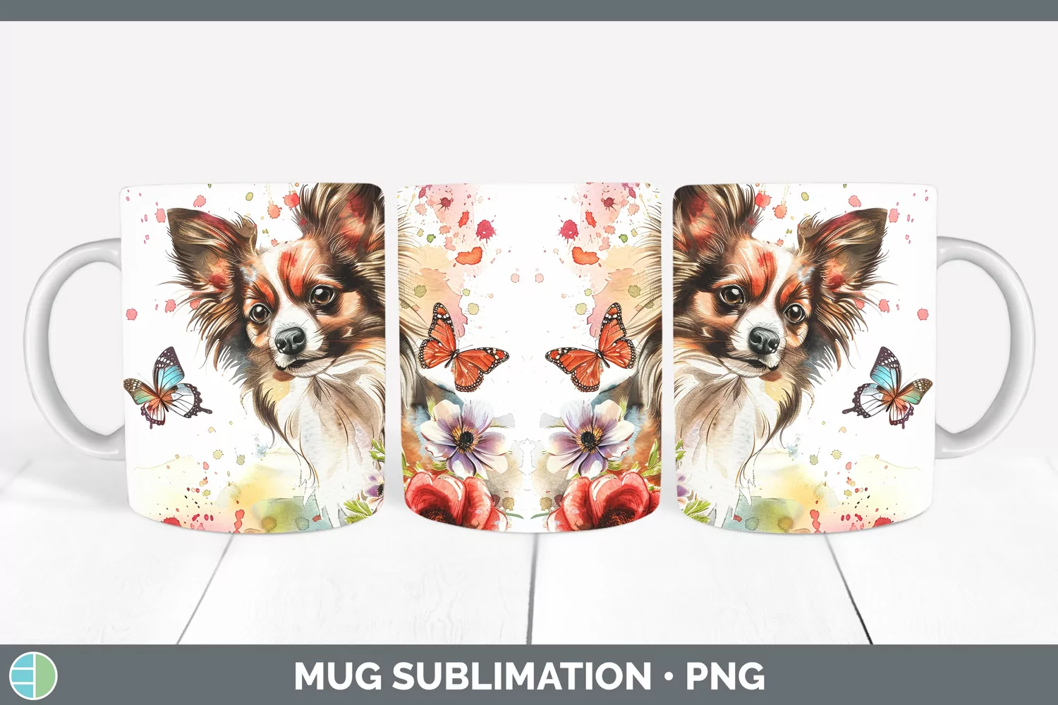 Butterfly Dog Papillon Dog Mug Wrap Sublimation Coffee Cup D