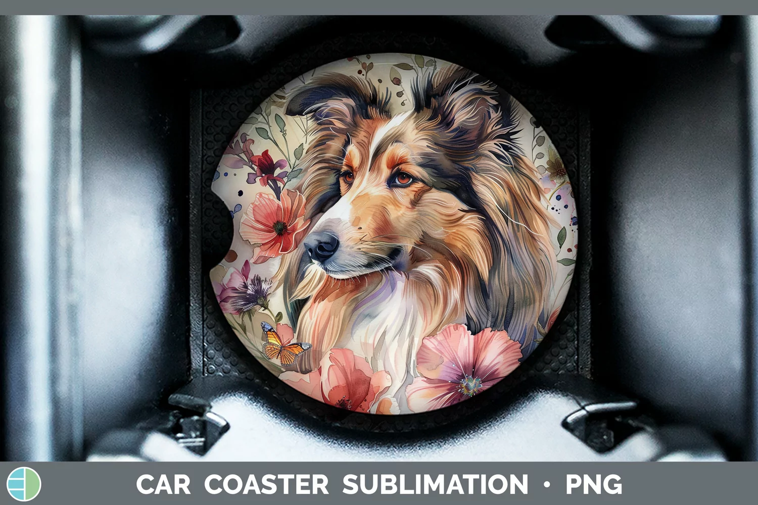 Butterfly Dog Rough Collie Car Coaster Sublimation Designs