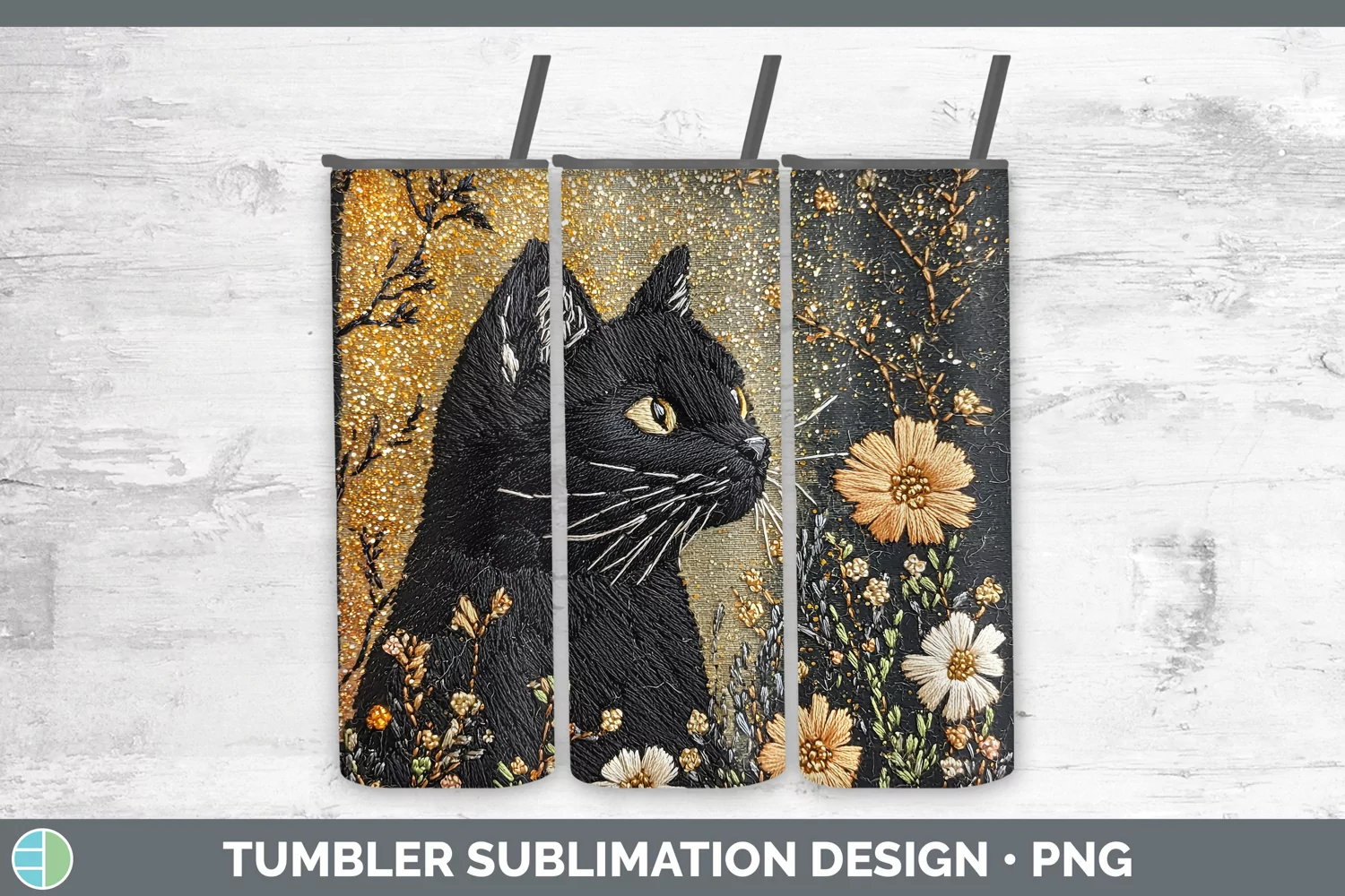Embroidered Black Cat Tumbler Sublimation 20 oz Skinny Tumbl